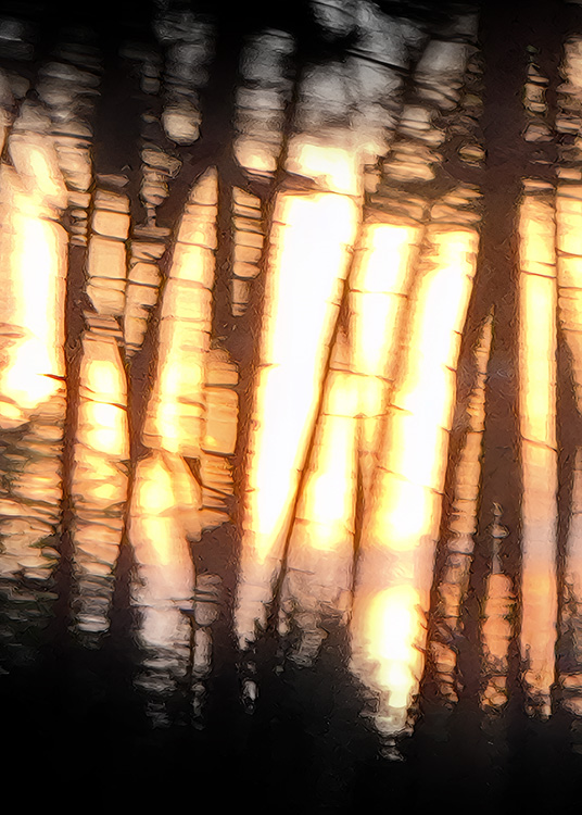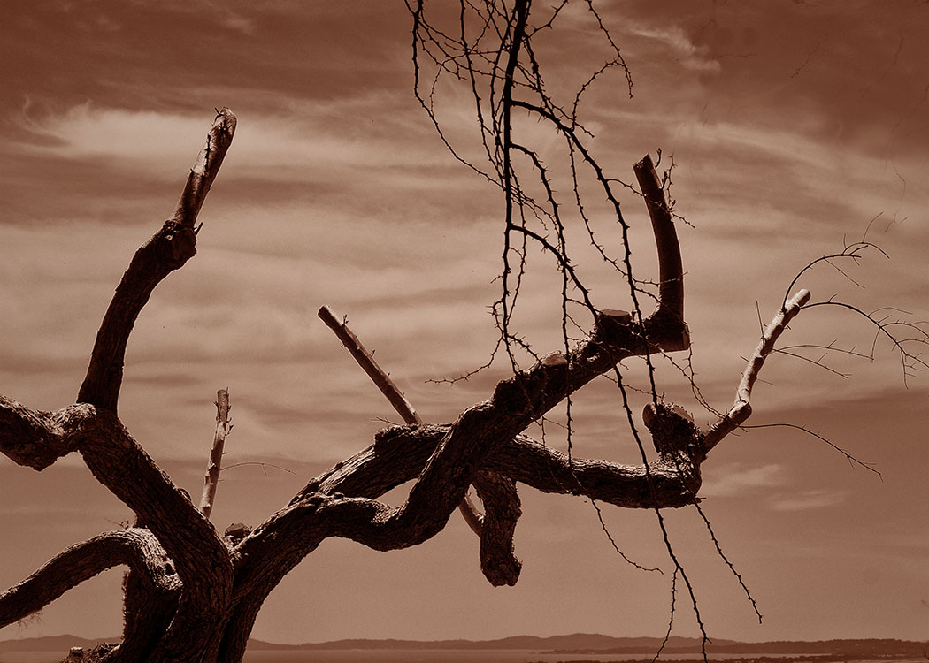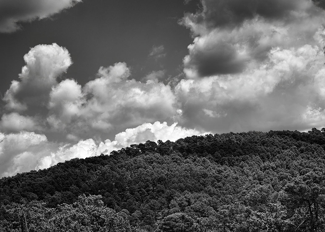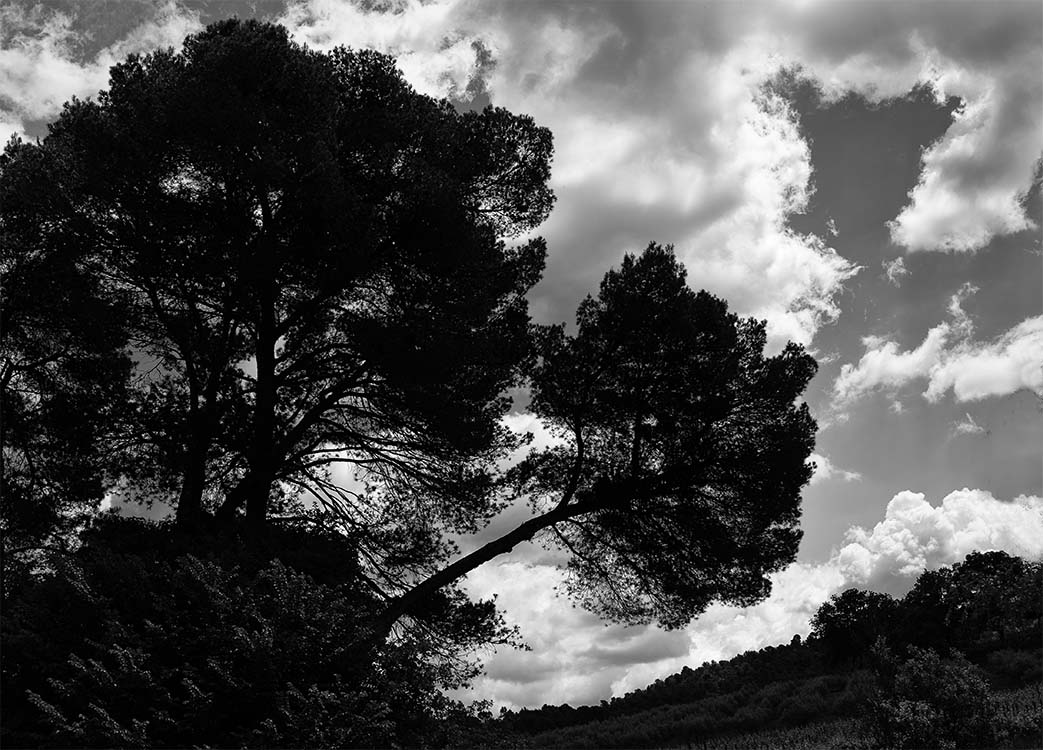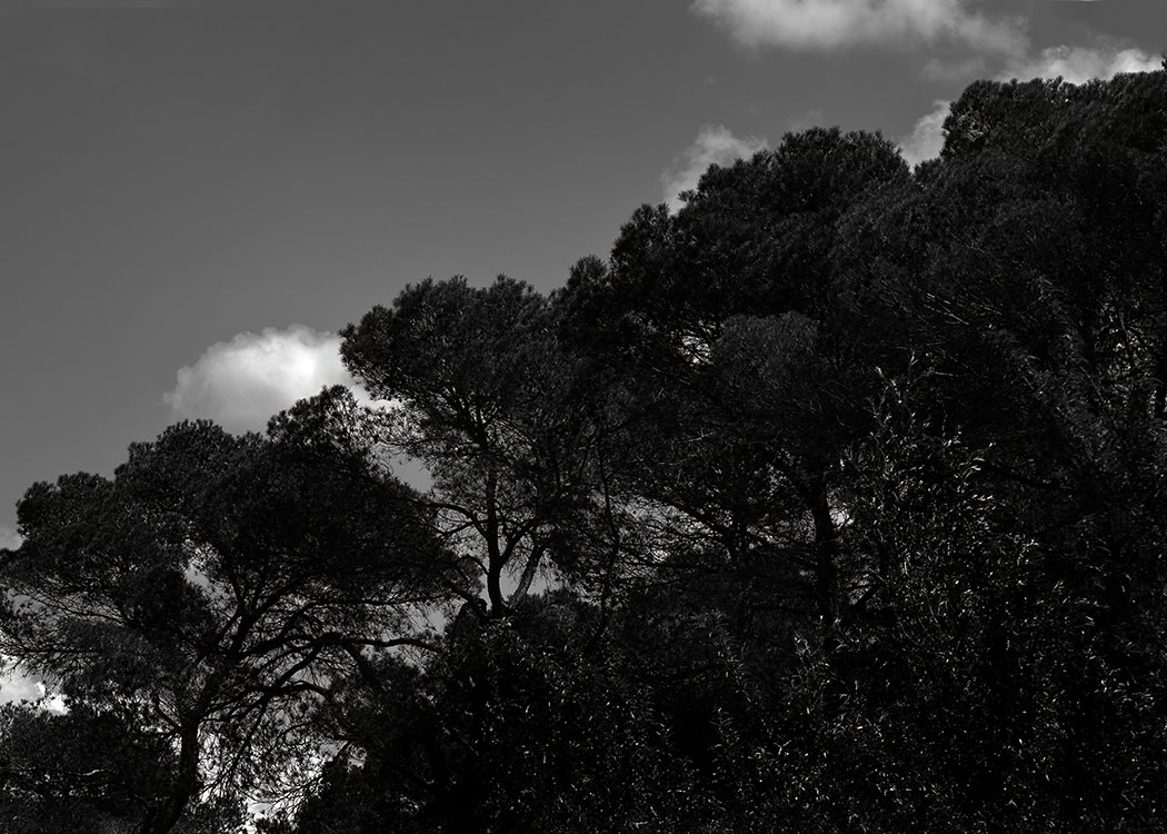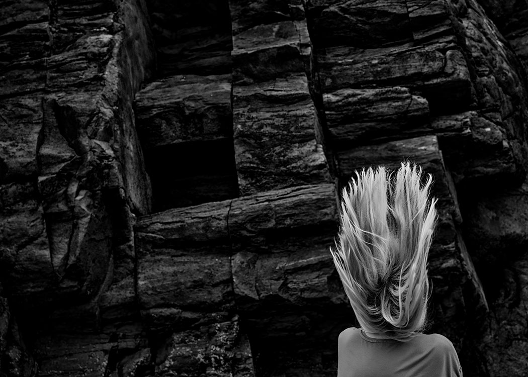 Dürre Äste wirken wie grafische Zeichnungen, während die massive Präsenz von Gestein und Fels Beständigkeit und Schwere verkörpert. Der Wald erscheint sowohl als Schutzraum und auch als Ort von Unruhe und Irritation. In dieser Spannung entfaltet sich eine atmosphärische Dichte, die „die Haare zu Berge stehen“ lässt.